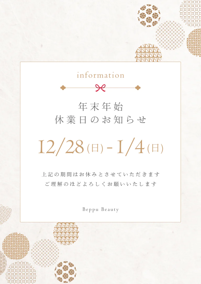 年末年始休診のお知らせ【12/28〜1/4はお休みとなります】