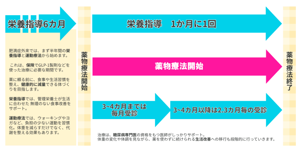 当院の肥満症外来は、肥満による健康障害の改善に特化しています。様々な専門性を持った医師や医療スタッフが連携し、あなたの健康的な減量をサポートいたします。